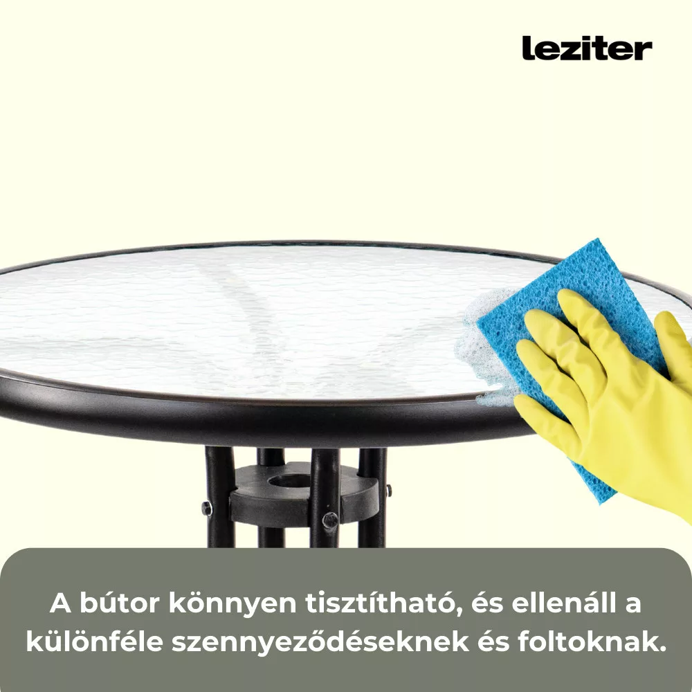 | Stół Andora | 71 cm | Średnica: 60 cm | Materiał: szkło i metal, Grubość szkła: 5 mm, metalowa rama, odporny na warunki atmosferyczne |