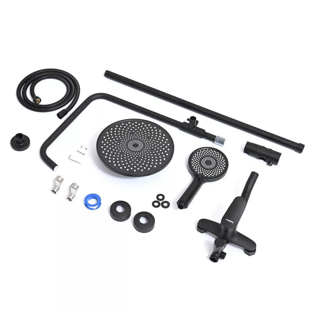 Tradycyjny zestaw prysznicowy składa się zazwyczaj z ręcznej słuchawki prysznicowej, węża prysznicowego, uchwytu na słuchawkę prysznicową, kolumny prysznicowej i przełącznika prysznica. Bateria jest zazwyczaj elementem wyposażenia, ale może być również dostępna do osobnego zakupu. Bateria może być jednouchwytowa lub dwuuchwytowa. Niektóre zestawy prysznicowe mogą być wyposażone w głowicę deszczową, funkcję bidetu, wylewkę wannową, a nawet baterię termostatyczną.