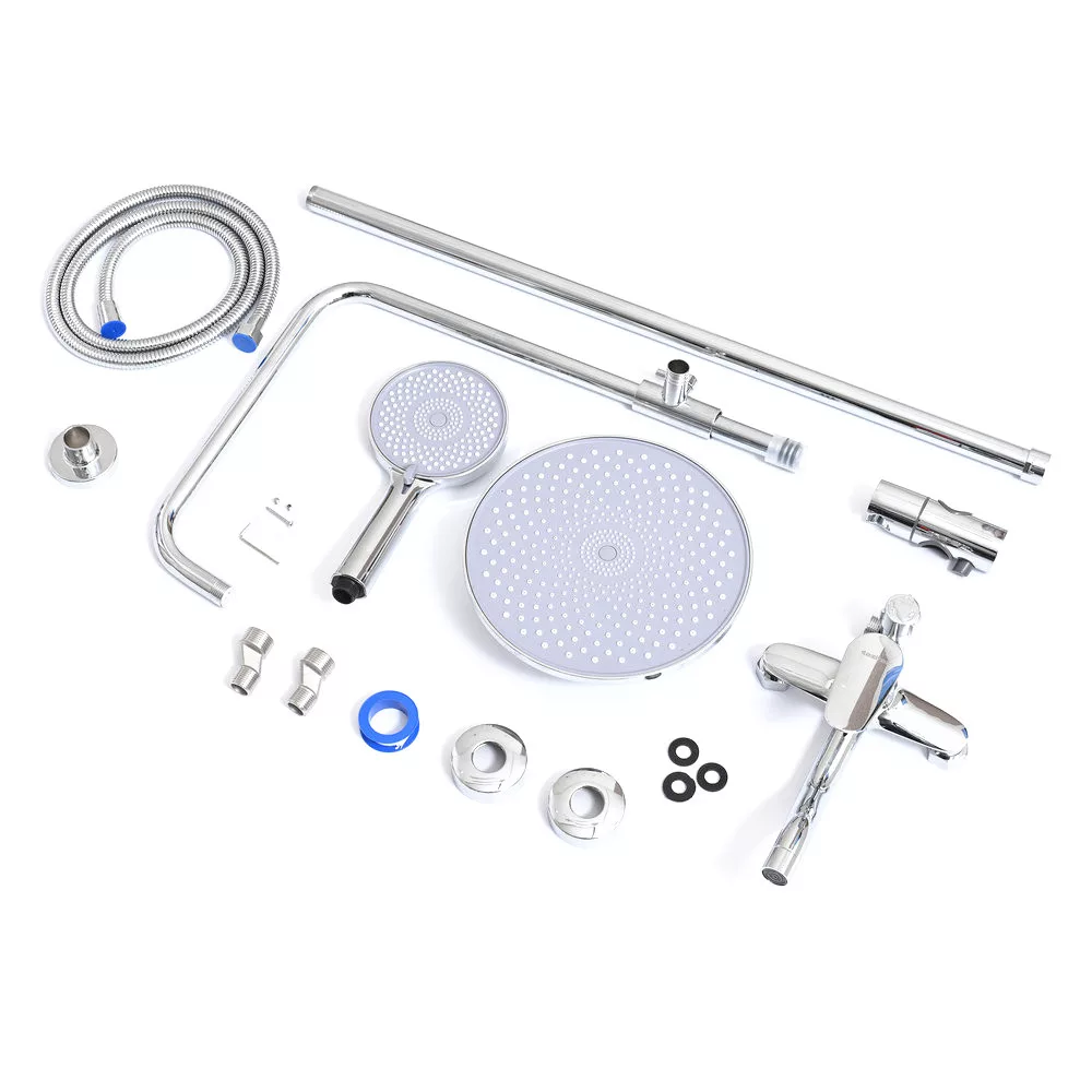 Tradycyjny zestaw prysznicowy składa się zazwyczaj z ręcznej słuchawki prysznicowej, węża prysznicowego, uchwytu na słuchawkę prysznicową, kolumny prysznicowej i przełącznika prysznica. Bateria jest zazwyczaj elementem wyposażenia, ale może być również dostępna do osobnego zakupu. Bateria może być jednouchwytowa lub dwuuchwytowa. Niektóre zestawy prysznicowe mogą być wyposażone w głowicę deszczową, funkcję bidetu, wylewkę wannową, a nawet baterię termostatyczną.