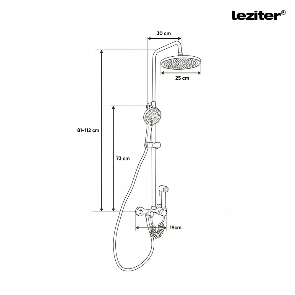 Uchwyt prysznica ręcznego należy zazwyczaj umieścić na wysokości 120–130 cm, a głowicę prysznicową (jeśli jest) na wysokości 200–210 cm. Optymalna wysokość zależy od wzrostu osób i konstrukcji produktu (drążek teleskopowy lub stały).