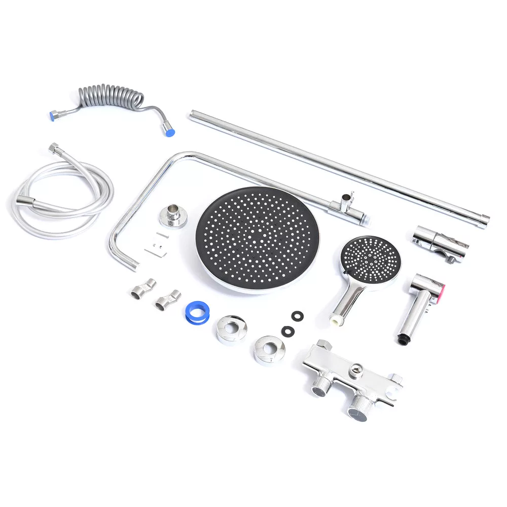 Tradycyjny zestaw prysznicowy składa się zazwyczaj z ręcznej słuchawki prysznicowej, węża prysznicowego, uchwytu na słuchawkę prysznicową, kolumny prysznicowej i przełącznika prysznica. Bateria jest zazwyczaj elementem wyposażenia, ale może być również dostępna do osobnego zakupu. Bateria może być jednouchwytowa lub dwuuchwytowa. Niektóre zestawy prysznicowe mogą być wyposażone w głowicę deszczową, funkcję bidetu, wylewkę wannową, a nawet baterię termostatyczną.