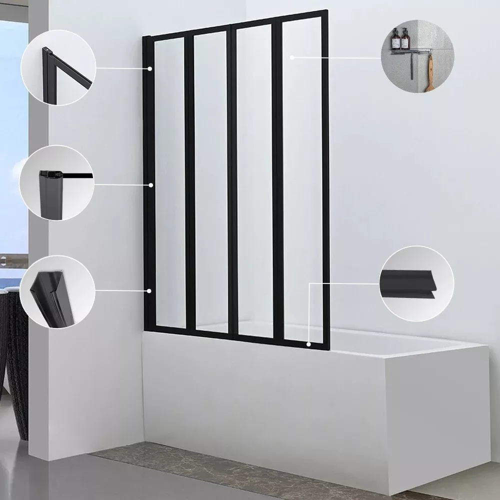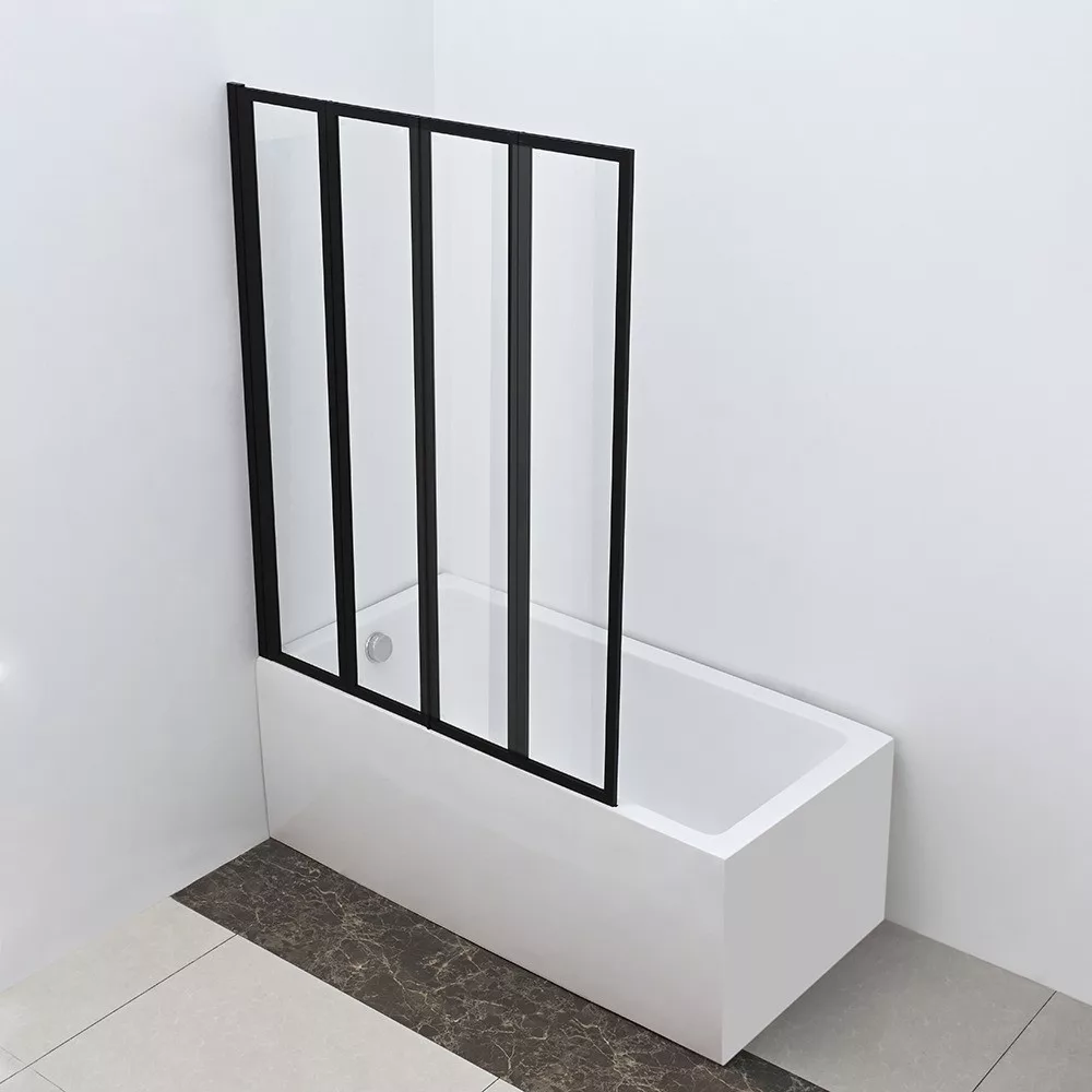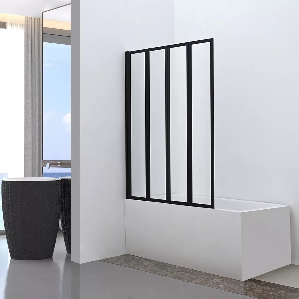 Parawan wykonany jest z bezpiecznego szkła hartowanego o grubości 4 mm, co zapewnia stabilność i długą żywotność. Uwzględniono nie tylko funkcjonalność, ale także styl: szklana powierzchnia, czyste, nowoczesne linie i matowy czarny kolor parawanu nadają każdej łazience elegancki, wyrafinowany wygląd. A jego kanciasta konstrukcja pozwala na bezpieczną kąpiel pod prysznicem.