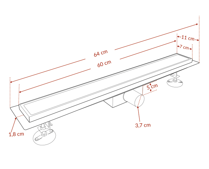 Estetyczny, nowoczesny design. Bezbarierowa instalacja bez progów. Większa wydajność odprowadzania wody, idealna do dużych głowic prysznicowych. Elastyczne możliwości montażu (przy ścianie, pośrodku, przy wejściu). Łatwe czyszczenie, dostęp do syfonu. Możliwość wpuszczenia w płaszczyznę podłogi.