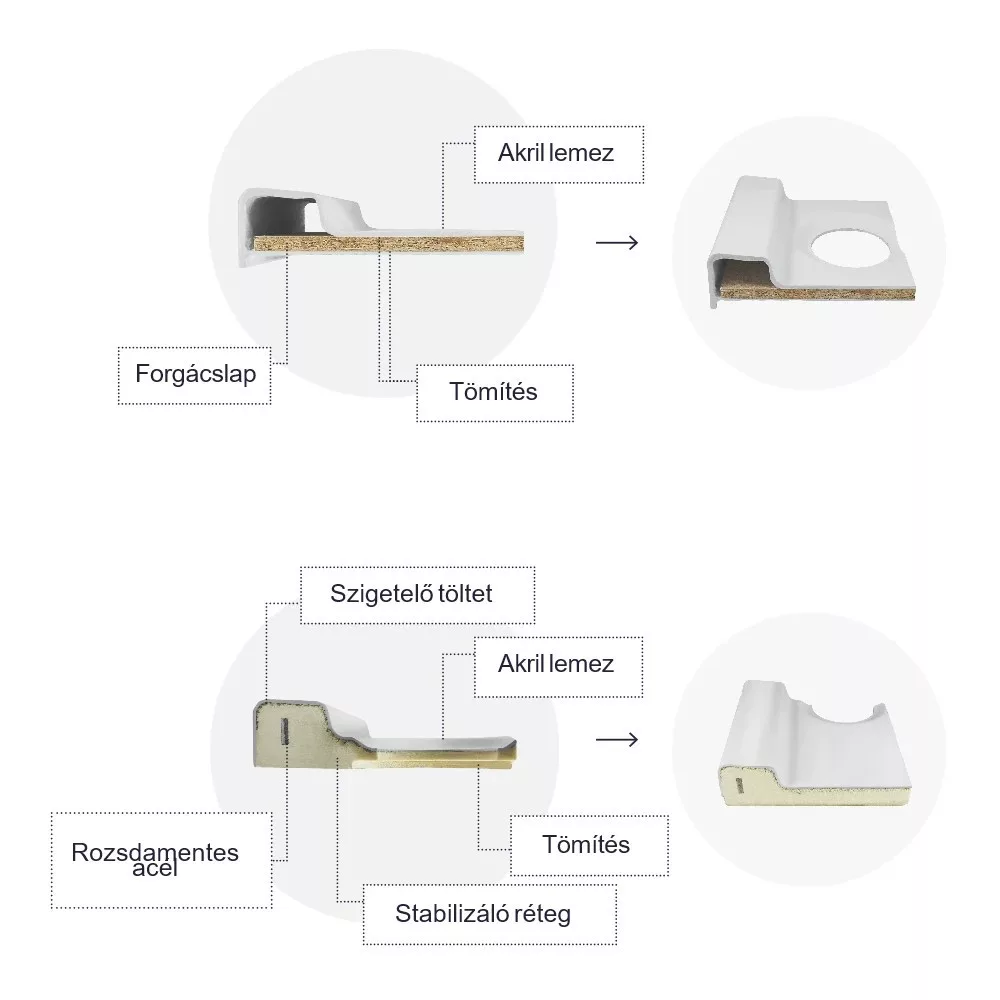 Akryl: Lekki, ciepły w dotyku, produkowany w wielu rozmiarach i kształtach. Brodziki akrylowe dobrze izolują ciepło, są odporne na codzienne użytkowanie, ale należy chronić je przed środkami czyszczącymi powodującymi zarysowania.