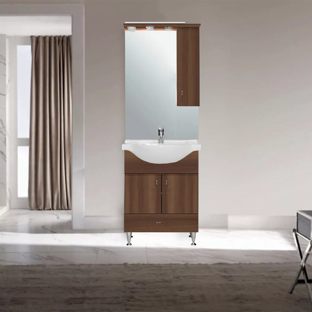Oprócz funkcjonalności, dużą uwagę zwrócono oczywiście nawygląd mebla . Dzięki orzechowemu kolorowi i klasycznym liniom, Aida tworzy harmonijną atmosferę w każdej łazience. Ze względu na materiał, z którego wykonane są meble (płyta meblowa), kolor boku korpusu może różnić się od koloru frontu wykonanego z płyty MDF o wysokim połysku.