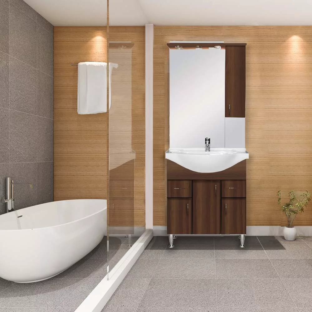 Oprócz funkcjonalności, dużą uwagę zwrócono oczywiście nawygląd mebli. Dzięki orzechowemu kolorowi i klasycznym liniom, Aida tworzy harmonijną atmosferę w każdej łazience.