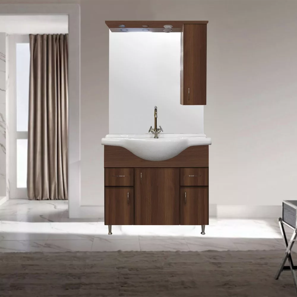 Oprócz funkcjonalności, dużą uwagę zwrócono oczywiście nawygląd mebla . Dzięki orzechowemu kolorowi i klasycznym liniom, Aida tworzy harmonijną atmosferę w każdej łazience. Ze względu na zastosowany materiał (płyta meblowa) kolor boku korpusu może różnić się od koloru frontu MDF o wysokim połysku.