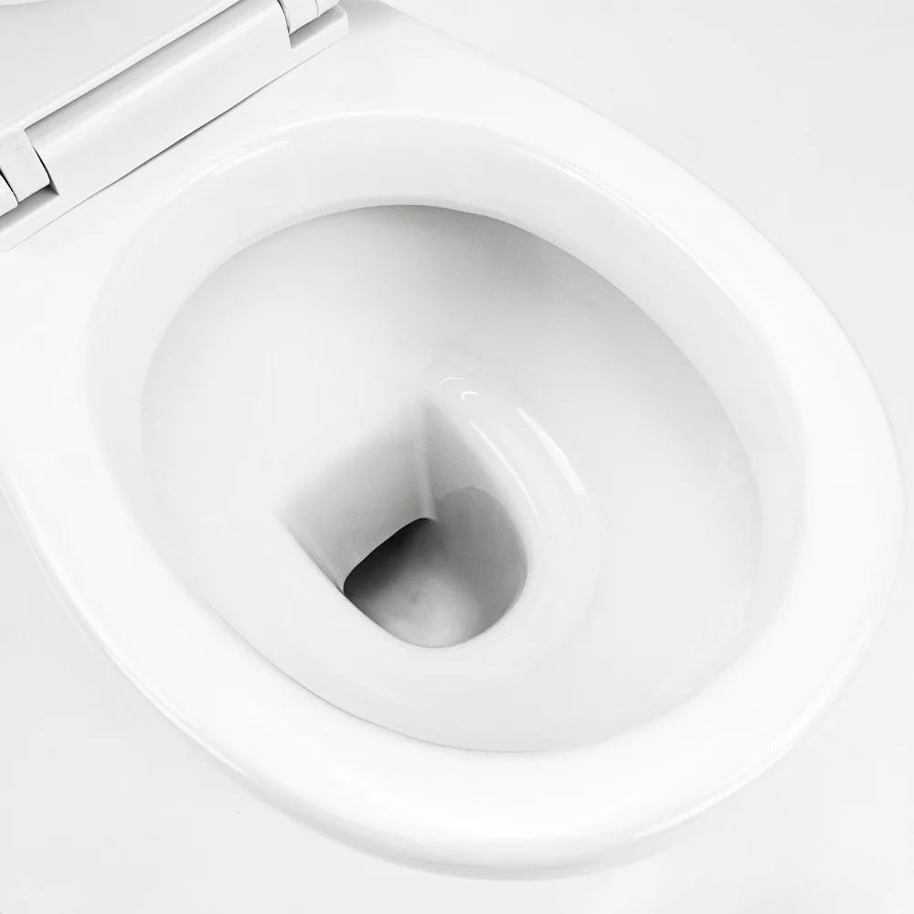 Toaleta CLEANO jest wykonana z białej ceramiki, trwałego i łatwego do czyszczenia materiału. Biały kolor ceramiki emanuje elegancją i doskonale pasuje zarówno do nowoczesnych, jak i klasycznych łazienek. Wysokiej jakości materiał gwarantuje długą żywotność i niezawodne użytkowanie. Ceramika jest odporna na zarysowania i plamy, zapewniając czysty i nowy wygląd za każdym razem.