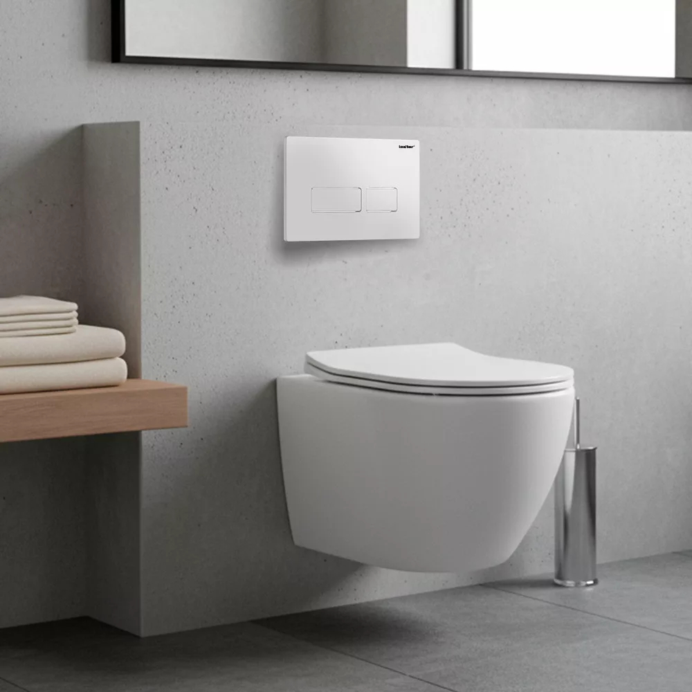 - Dla tych, którzy szukają oszczędzającej miejsce, montowanej na ścianie toalety do mniejszych lub uporządkowanych łazienek.
