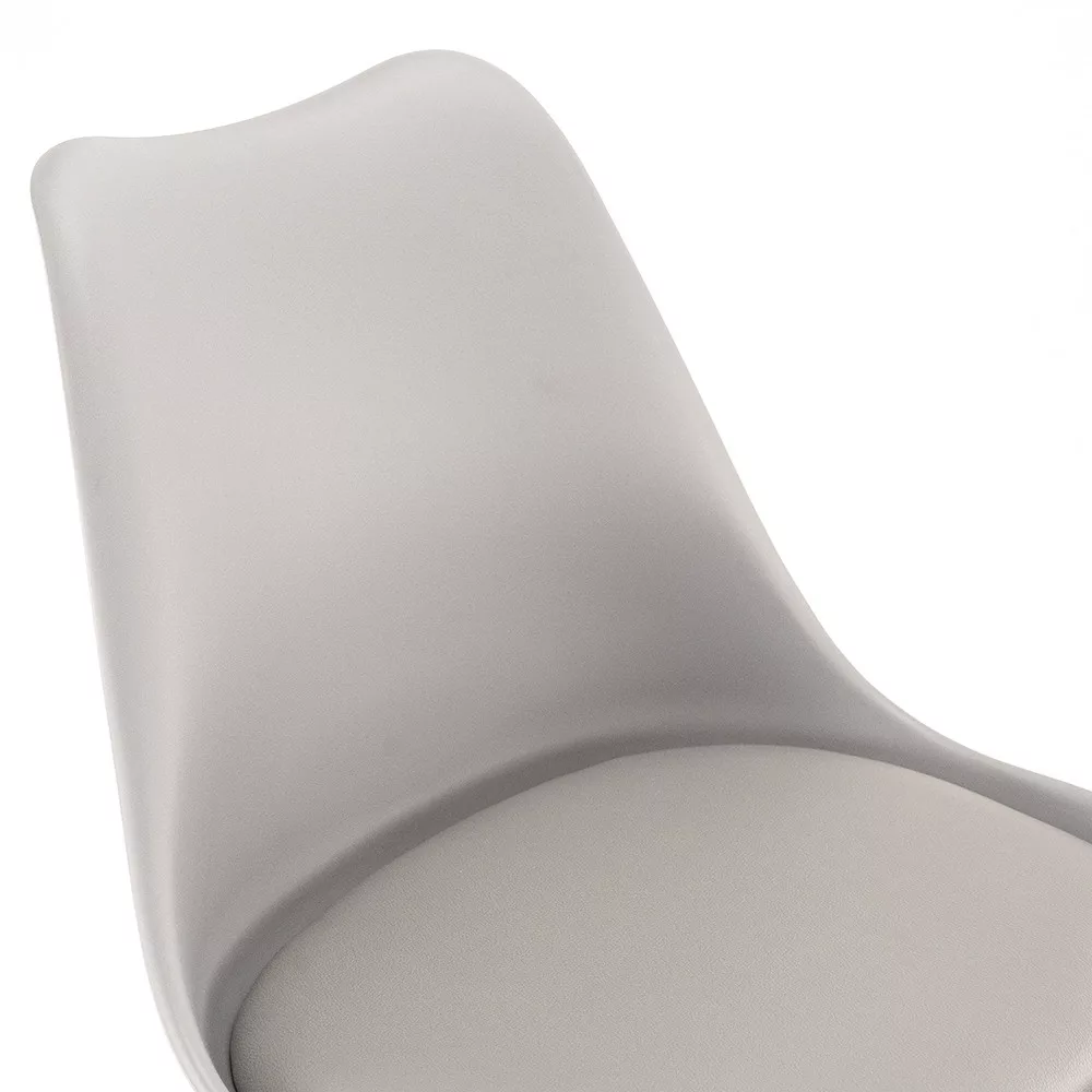 - Materiał: siedzisko z polipropylenu (PP), tapicerka z tkaniny syntetycznej PVC, drewniane nogi w kolorze buku