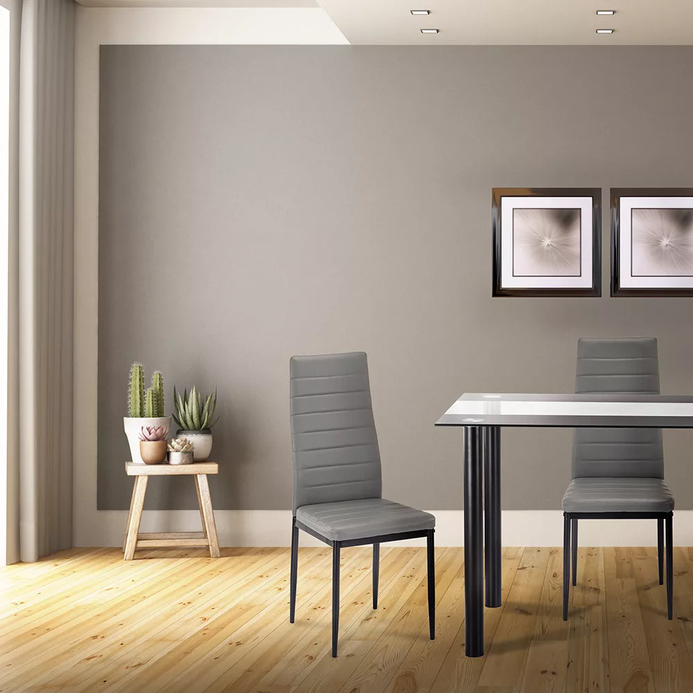 Krzesło do jadalni Tino NOVA kryje w swojej prostocie elegancję. Szare siedzisko i oparcie w połączeniu z czarnymi, malowanymi proszkowo żelaznymi nogami nadają jadalni nowoczesny wygląd.