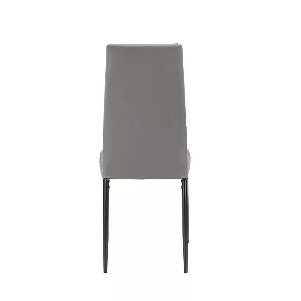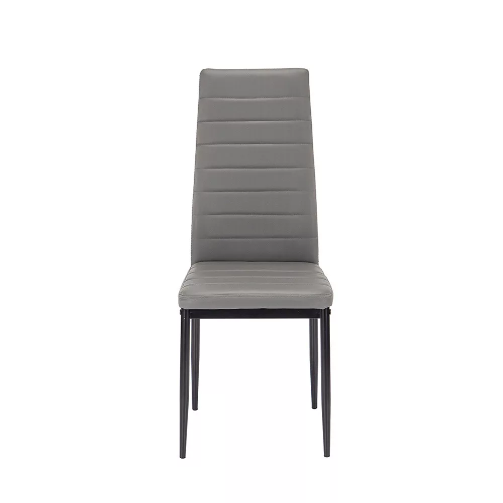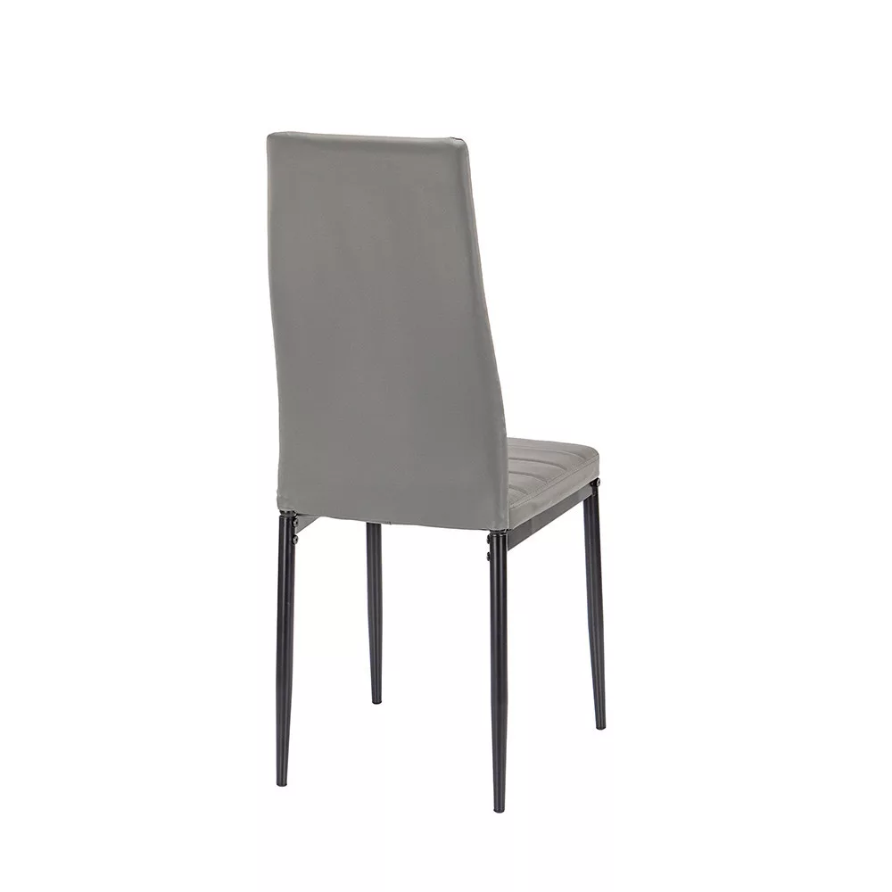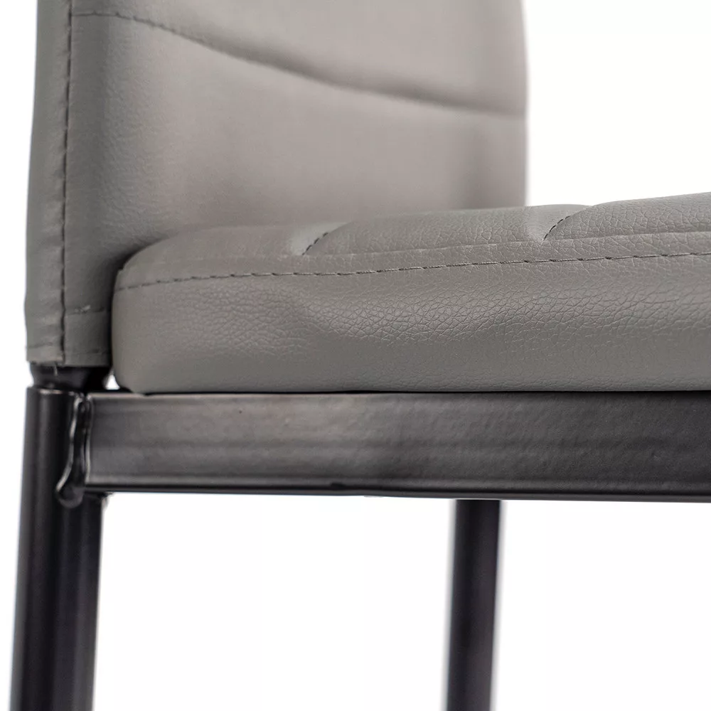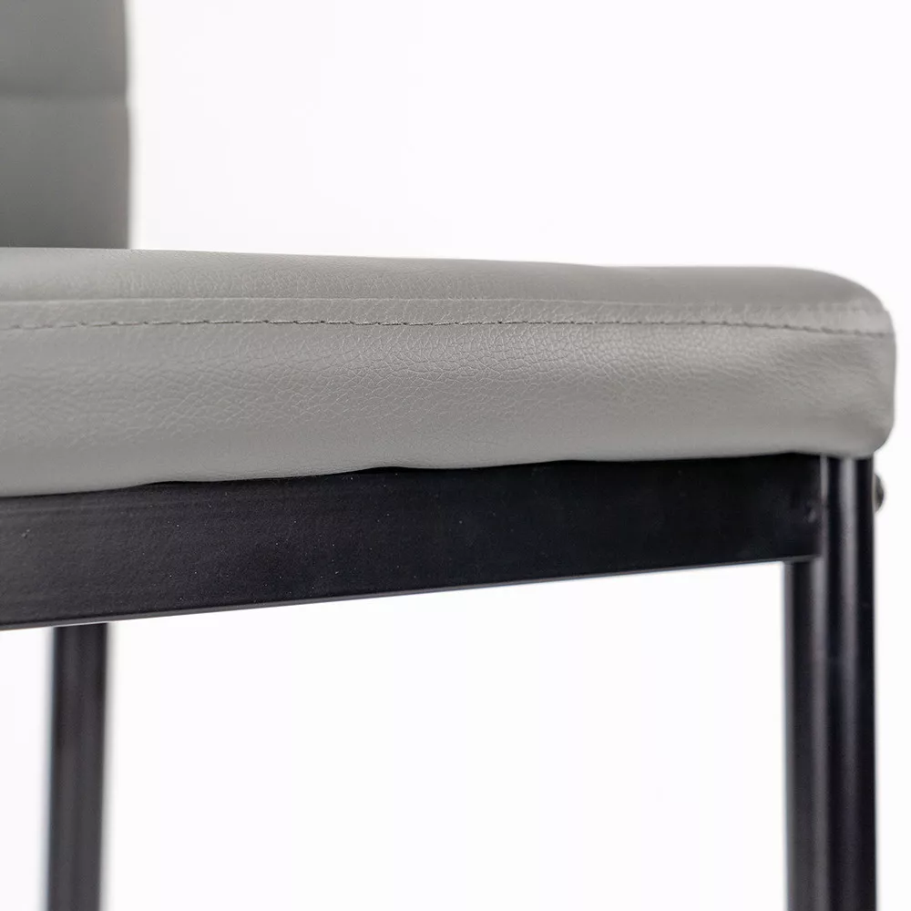 Szary kolor siedziska i oparcia wykonano z trwałego i łatwego w czyszczeniu materiału. Malowane proszkowo na czarno żelazne nogi zapewniają krzesłu stabilne podparcie.