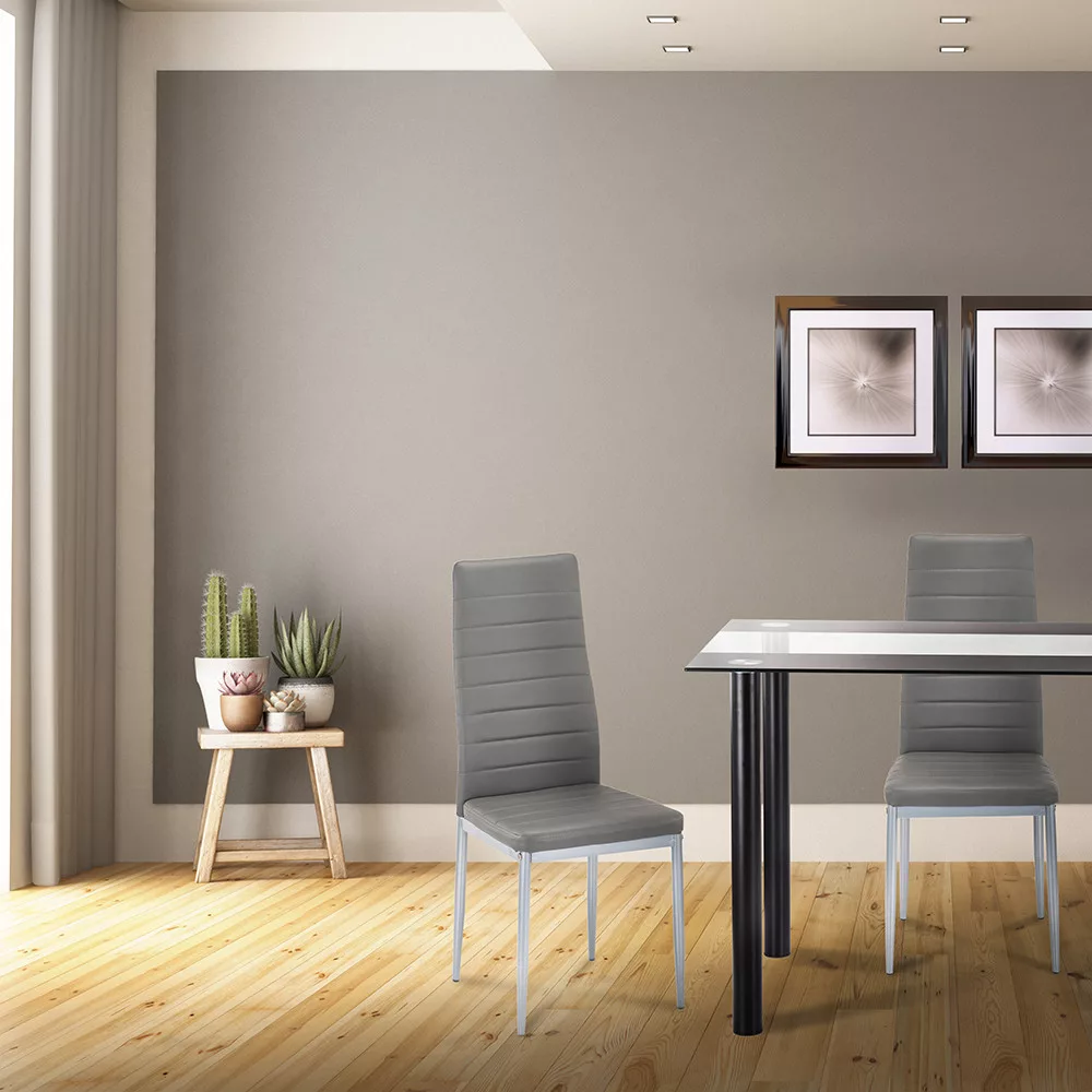 Krzesło do jadalni Tino NOVA kryje w swojej prostocie elegancję. Szare siedzisko i oparcie w połączeniu z czarnymi, malowanymi proszkowo żelaznymi nogami nadają jadalni nowoczesny wygląd.