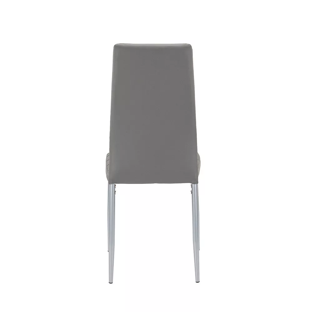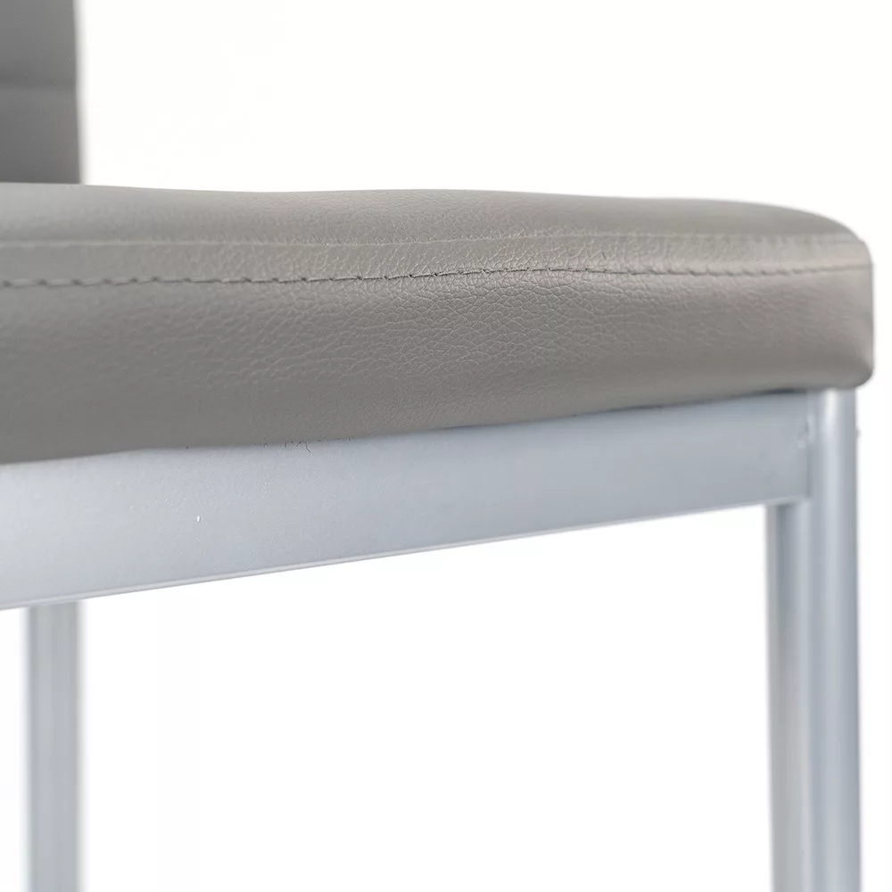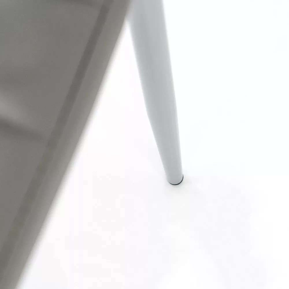 Szary kolor siedziska i oparcia wykonano z trwałego i łatwego w czyszczeniu materiału. Malowane proszkowo na czarno żelazne nogi zapewniają krzesłu stabilne podparcie.