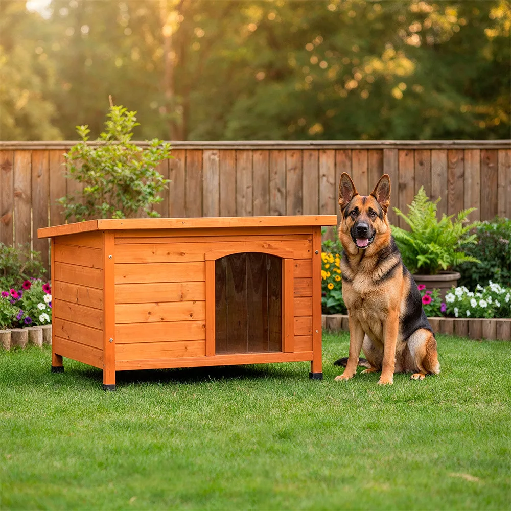 - Buda dla psa Smiley z płaskim dachem, lakierowane drewno