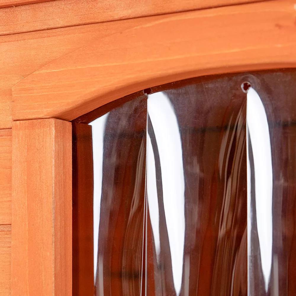 Plastikowe drzwiczki budy dla psa zapewniają dodatkową ochronę przed zimnem i chronią przed deszczem i wiatrem. Konstrukcja drzwiczek zapewnia łatwe wchodzenie i wychodzenie psa. Wejście ma wymiary 25(szerokość)x36(wysokość) cm.
