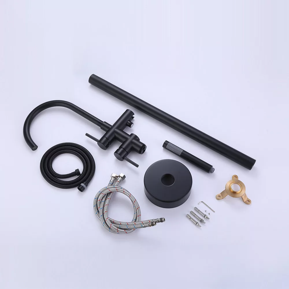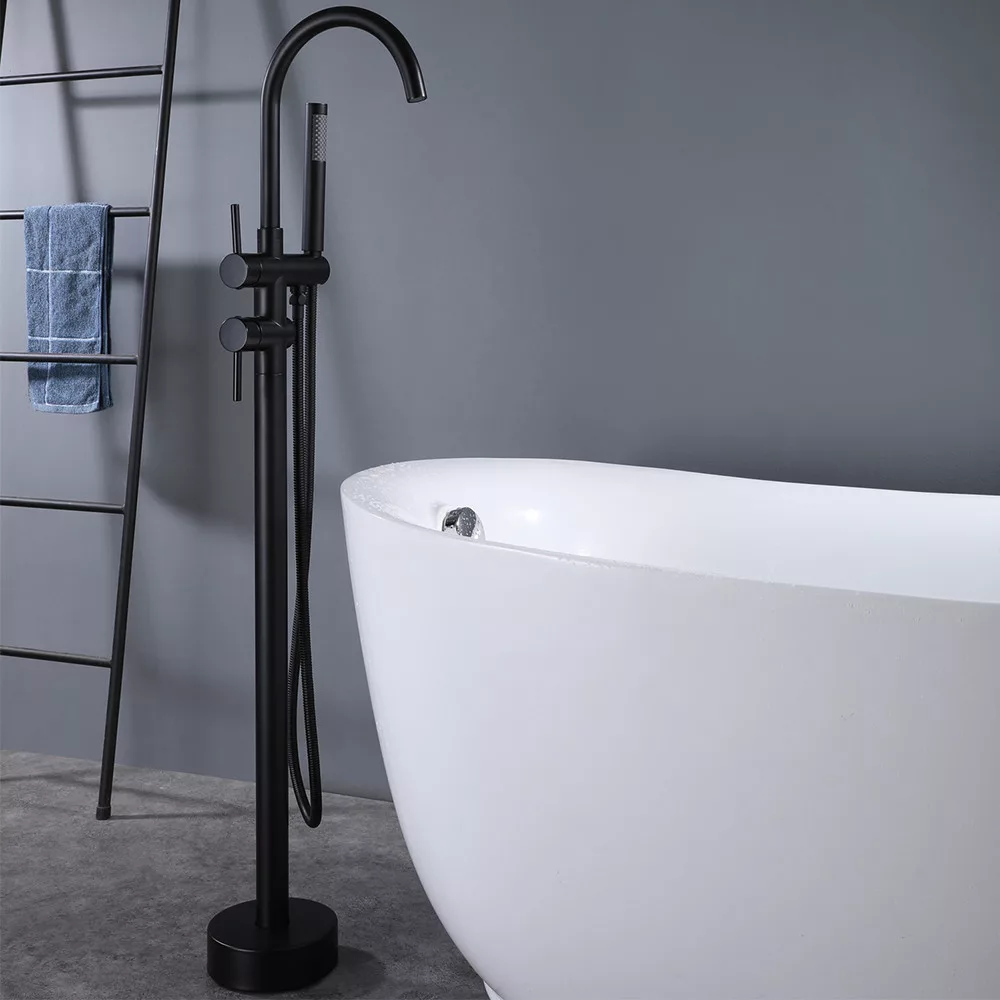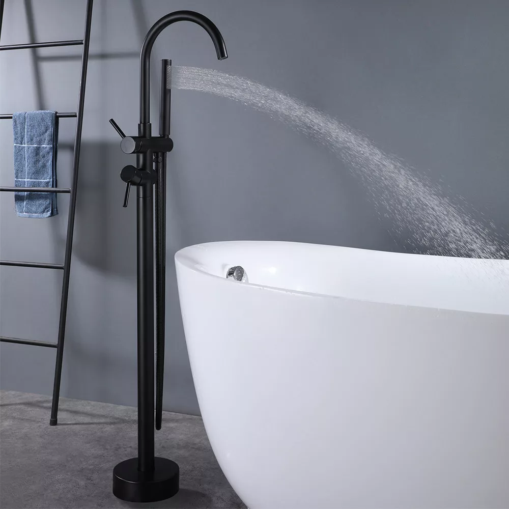 Wolnostojąca bateria wannowa Tia to idealna równowaga między nowoczesnym designem a klasyczną elegancją. Jej czyste linie i błyszczące czarne wykończenie będą dobrze wyglądać w każdej łazience.