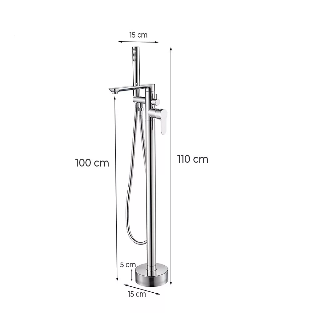 Korpus baterii o wysokości 100 cm zapewnia ergonomiczną konstrukcję, a pełna wysokość 110 cm zapewnia optymalny dostęp. Wylewka o długości 15 cm uwalnia wodę do wanny w idealnej pozycji, a główka prysznicowa zapewnia maksymalną kontrolę dzięki wygodnemu uchwytowi.
