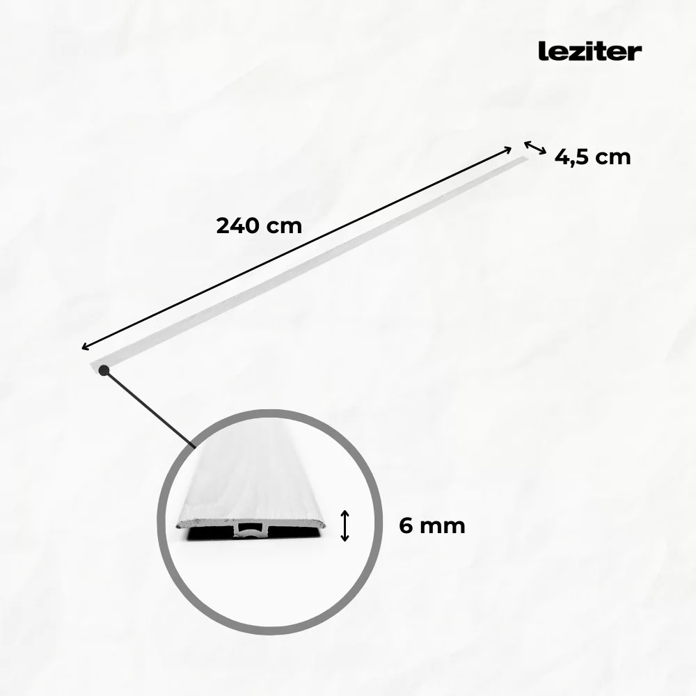 Profil T do podłóg winylowych SPC to idealne rozwiązanie do łączenia powierzchni podłogowych o tej samej grubości. Profil T to doskonały wybór, gdy chcesz stworzyć ładne i płynne przejście między różnymi rodzajami podłóg. Szczególnie zalecany do stosowania z dopasowaną kolorystycznie podłogą Leziter Hradok Oak SPC.