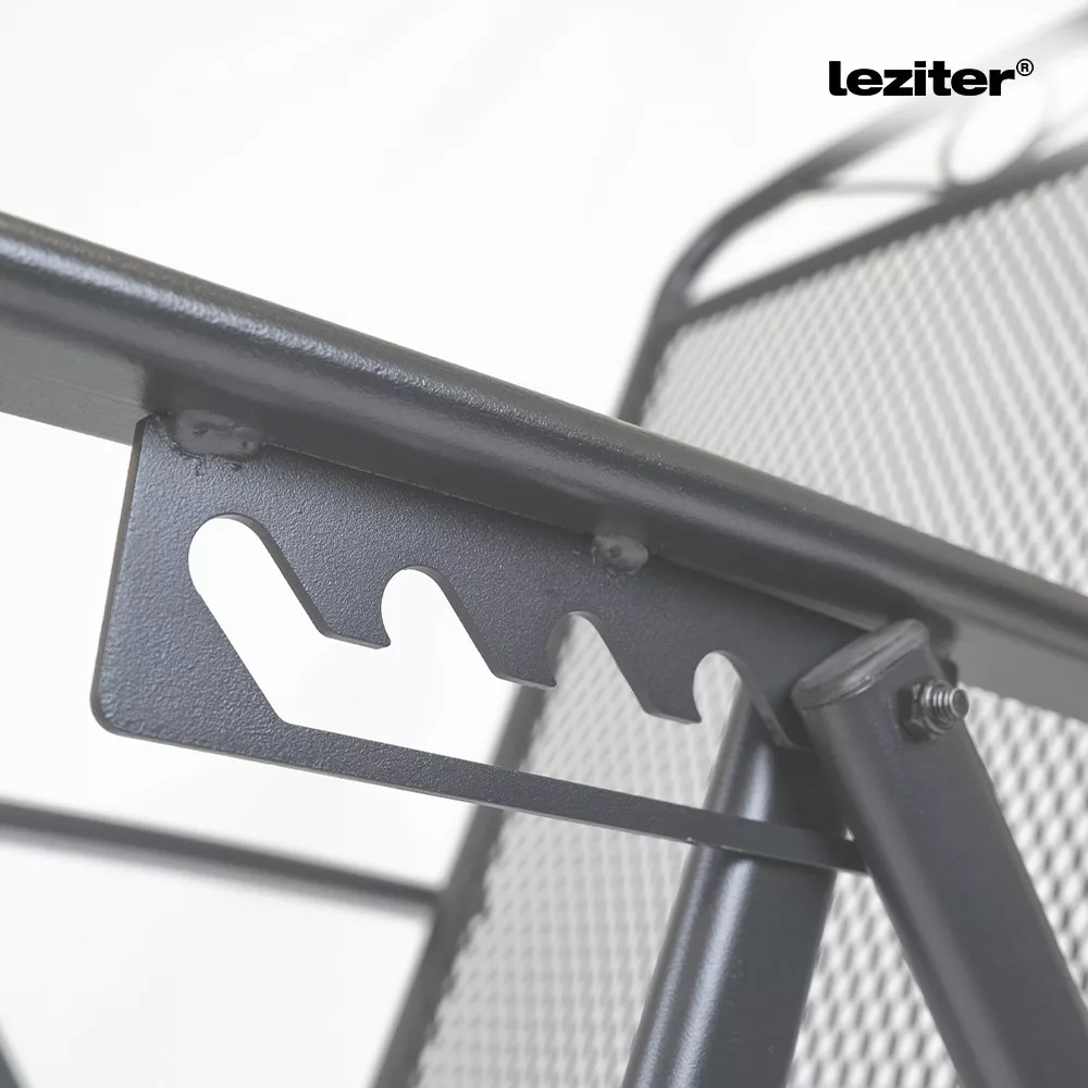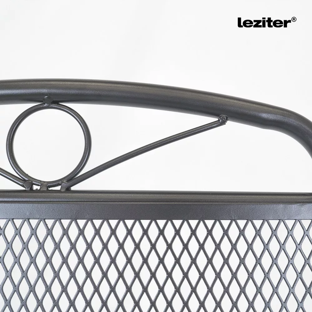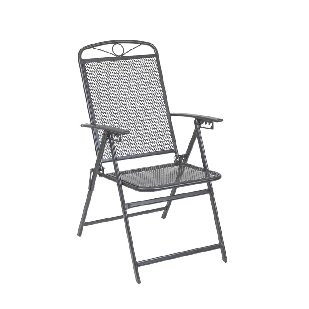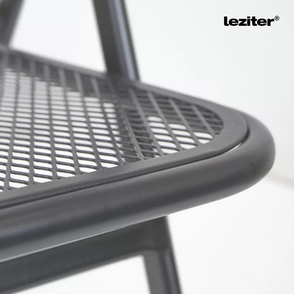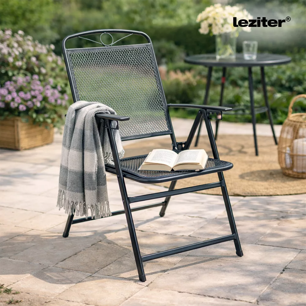 Składane krzesło ogrodowe Leziter Alba Metal Mesh w kolorze antracytowym z solidną stalową ramą, odpornym na korozję i malowanym proszkowo wykończeniem, wygodną konstrukcją podłokietników i oszczędzającą miejsce składaną konstrukcją to praktyczny i trwały wybór do ogrodów, tarasów lub balkonów.