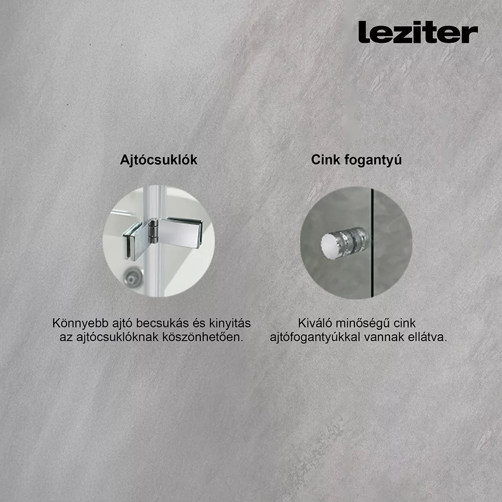 Rendszeres tisztítás: Heti egyszer célszerű alaposabban tisztítani zuhanyüveg tisztítóval vagy házi szerekkel (pl. ecet, citromsav). A makacs vízkő ellen ecet–szódabikarbóna paszta használható.