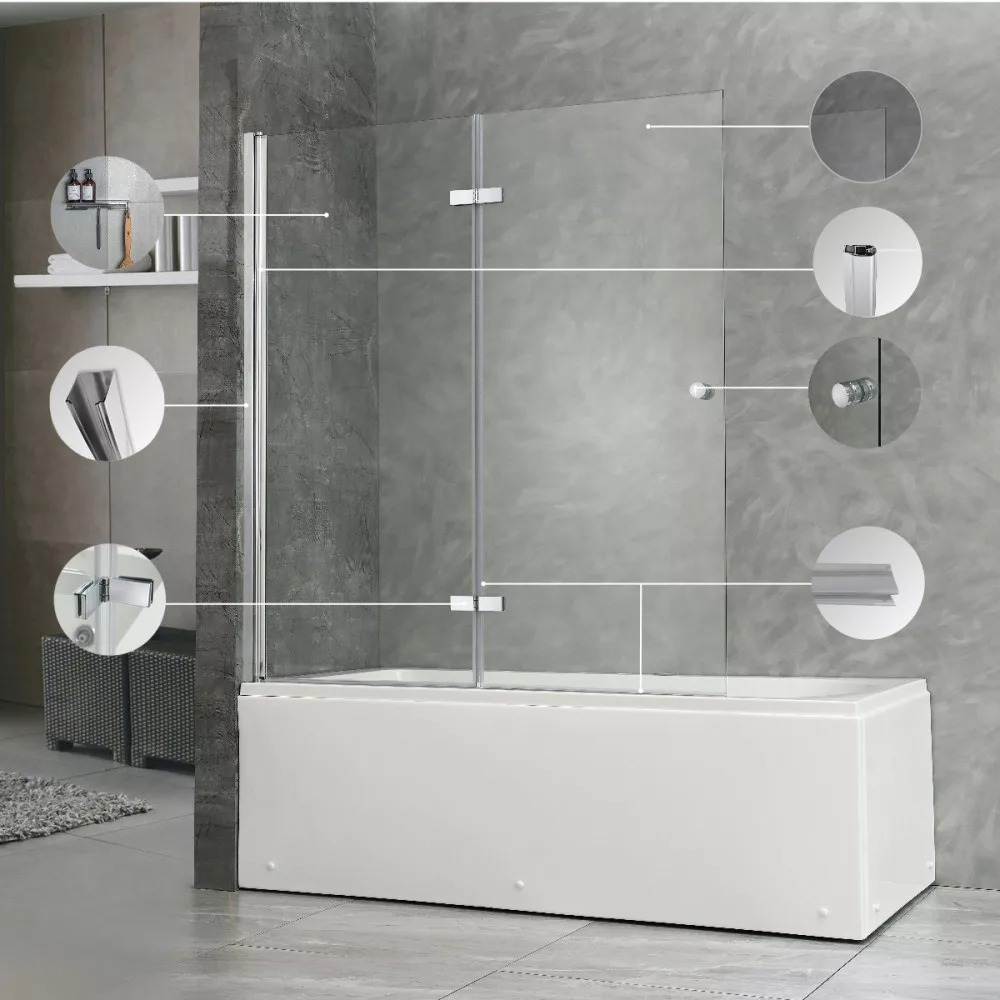 - Szélesség: A fix és egyrészes kádparavánok 60–80 cm-t fednek le, a kétrészes vagy tolóajtós modellek kb. 100–120 cm-t, míg a dupla tolóajtós megoldások akár a kád teljes hosszát is.