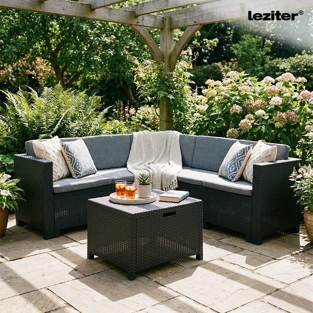 Zestaw narożnych mebli ogrodowych Leziter City: gdzie styl łączy się z komfortem - bez kompromisów.