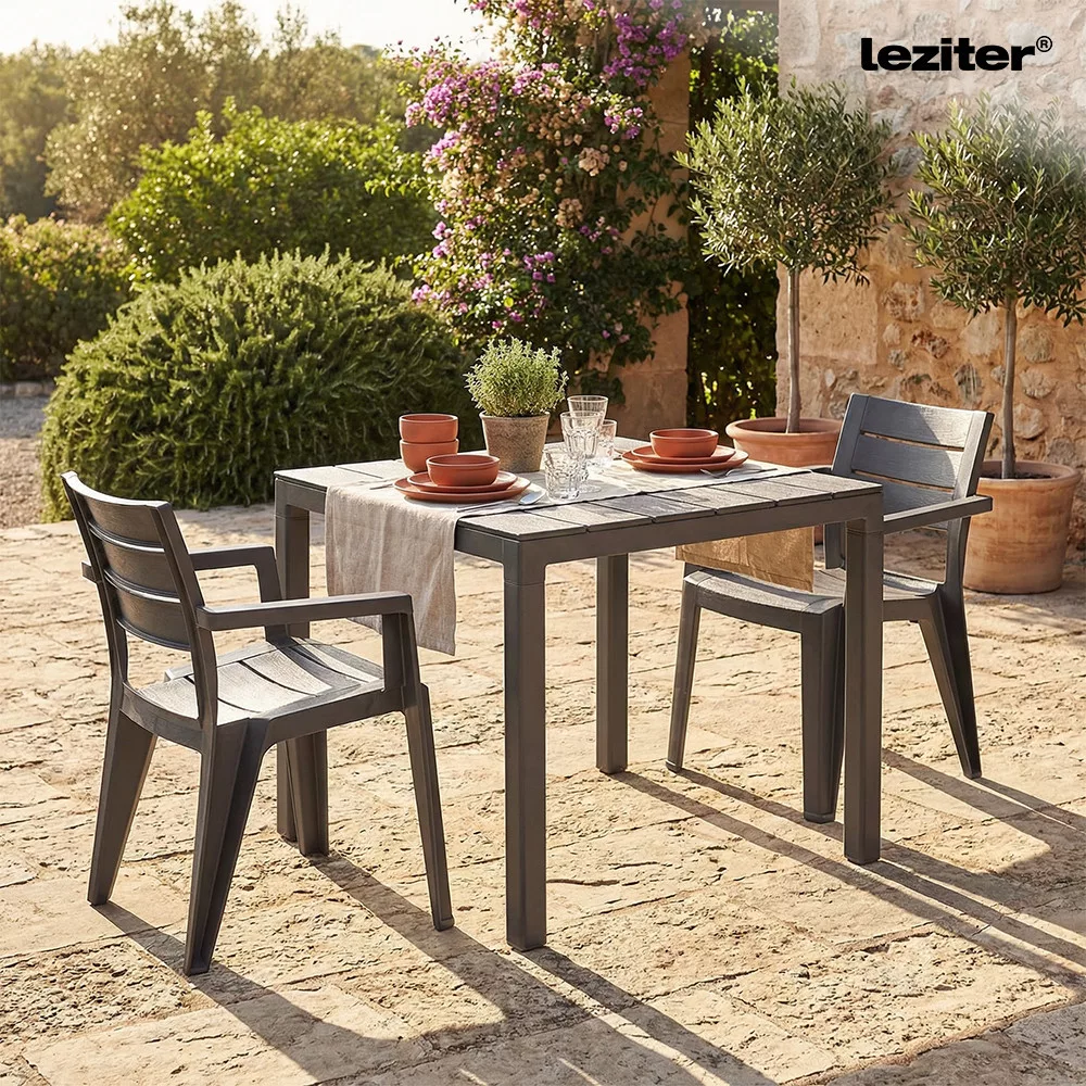 Wybierz plastikowy stół ogrodowy Evan w kolorze cappuccino, aby stworzyć praktyczną, nowoczesną jadalnię lub salon na świeżym powietrzu.