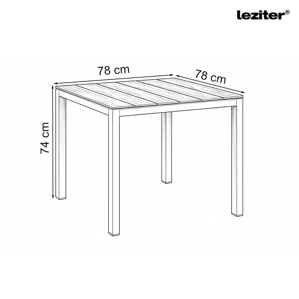Stół ogrodowy Evan jest idealny dla osób poszukujących kompaktowego, odpornego na warunki atmosferyczne i chronionego przed promieniowaniem UV stołu zewnętrznego. Polecany jest również na tarasy, balkony, do ogrodów i na zewnątrz lokali gastronomicznych, gdzie ważna jest łatwość czyszczenia i trwałość.