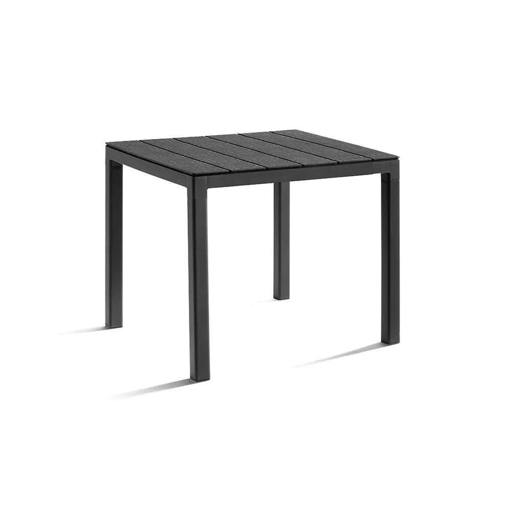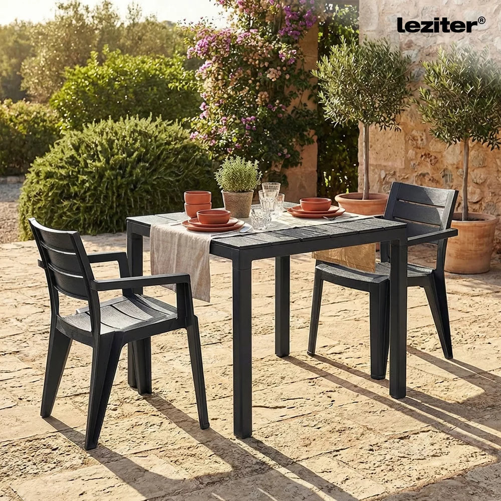 Wybierz plastikowy stół ogrodowy Evan w kolorze grafitowym, aby stworzyć praktyczną, nowoczesną jadalnię lub salon na świeżym powietrzu.