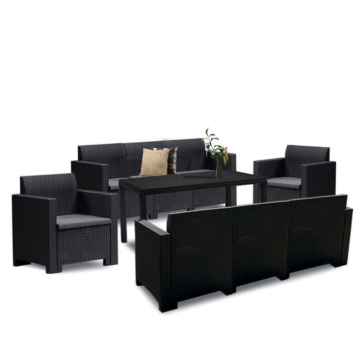Wykonany z odpornego na promieniowanie UV i warunki atmosferyczne tworzywa sztucznego , 8-częściowy zestaw Nero jest trwały. Oznacza to, że można z niego korzystać przez cały rok, bez konieczności pakowania go i wynoszenia, gdy pogoda się psuje. Wykonany z trwałego i wytrzymałego plastiku, zestaw ten jest ponadczasowym wyborem. Zestaw mebli idealnie wpasuje się w każdą przestrzeń wokół domu, tworząc idealne miejsce do relaksu na świeżym powietrzu. Jego naturalne wykończenie inspirowane wikliną rattanową jest jedną z zalet estetycznych produktu.