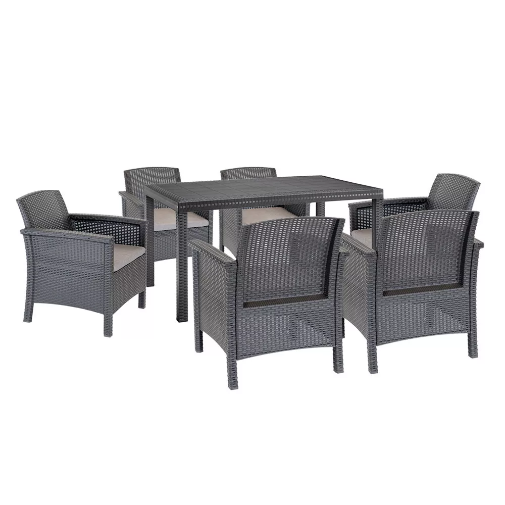 Zestaw 6-osobowych mebli ogrodowych Venus IV Set to idealne połączenie komfortu i stylu! Ten wysokiej jakości zestaw mebli ogrodowych będzie idealnym wyborem dla Ciebie i Twoich przyjaciół, aby cieszyć się czasem spędzonym na świeżym powietrzu, relaksując się w stylu i komforcie.