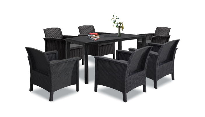 Odporność na warunki atmosferyczne. Zestaw mebli z łatwością poradzi sobie ze słońcem, deszczem, a nawet wilgocią.
