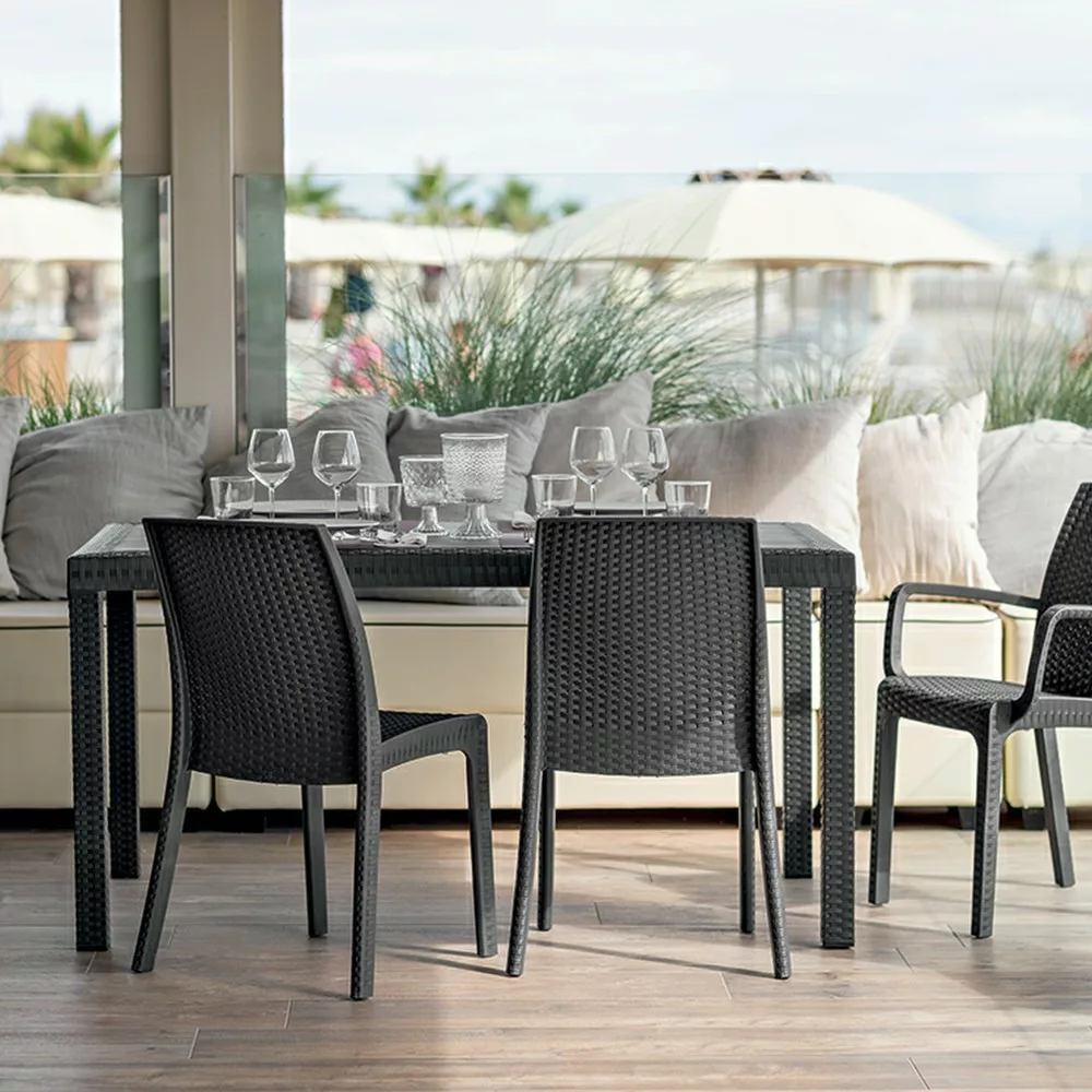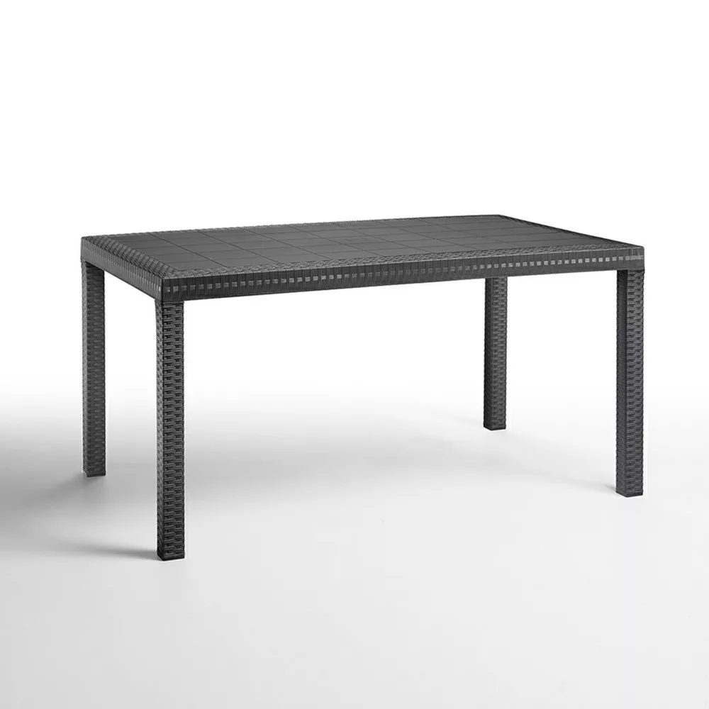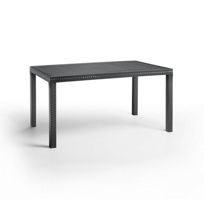 Wyprodukowany we Włoszech, wygodny i elegancki prostokątny wysoki stół rattanowy w kolorze grafitowym mierzy 150x 90x 74 cm. Wykonany z tworzywa sztucznego odpornego na warunki atmosferyczne, może być również umieszczony przy basenie. Jest to ponadczasowy mebel, który będzie wyglądał jak nowy przez wiele lat. Łatwy w montażu, nie wymaga profesjonalnej wiedzy.