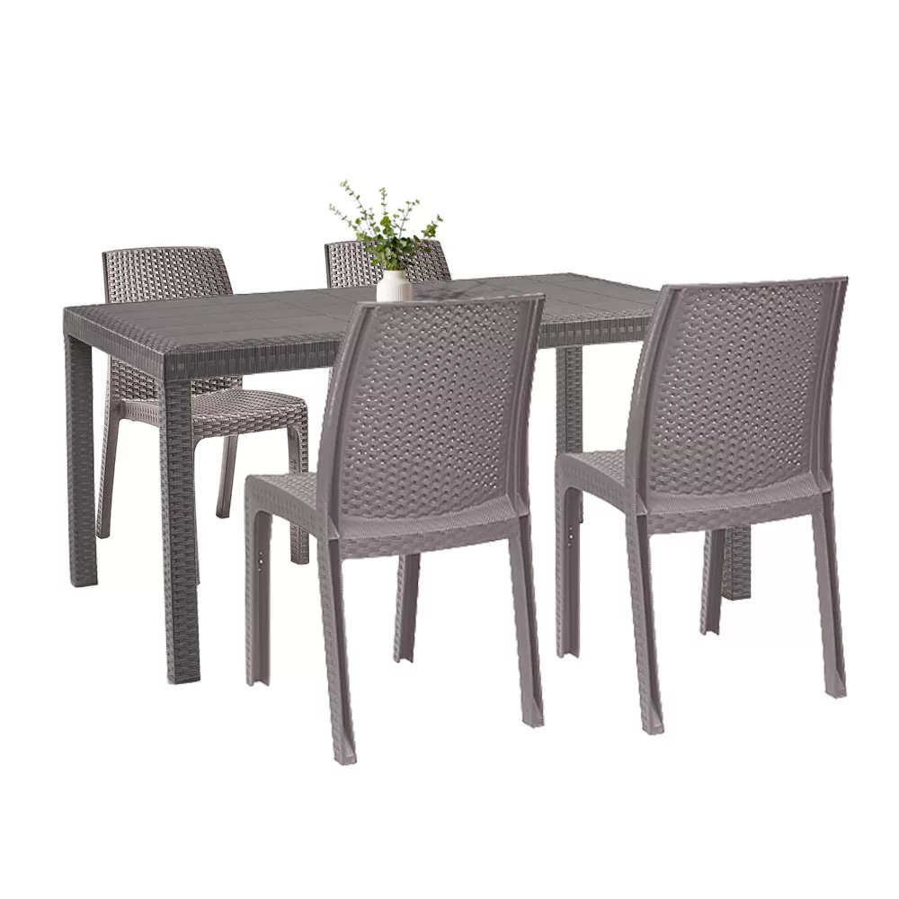 Ez a 4+1 kerti bútor szett ideális választás azoknak, akik egy időtálló, stílusos, mégis alacsony karbantartási igényű megoldást keresnek a szabadba. Legyen szó családi reggeliről a kertben, baráti grillezésről a hétvégén vagy vendégek fogadásáról egy kávézó teraszán – a Hellda szett megbízható társad lesz minden évszakban.