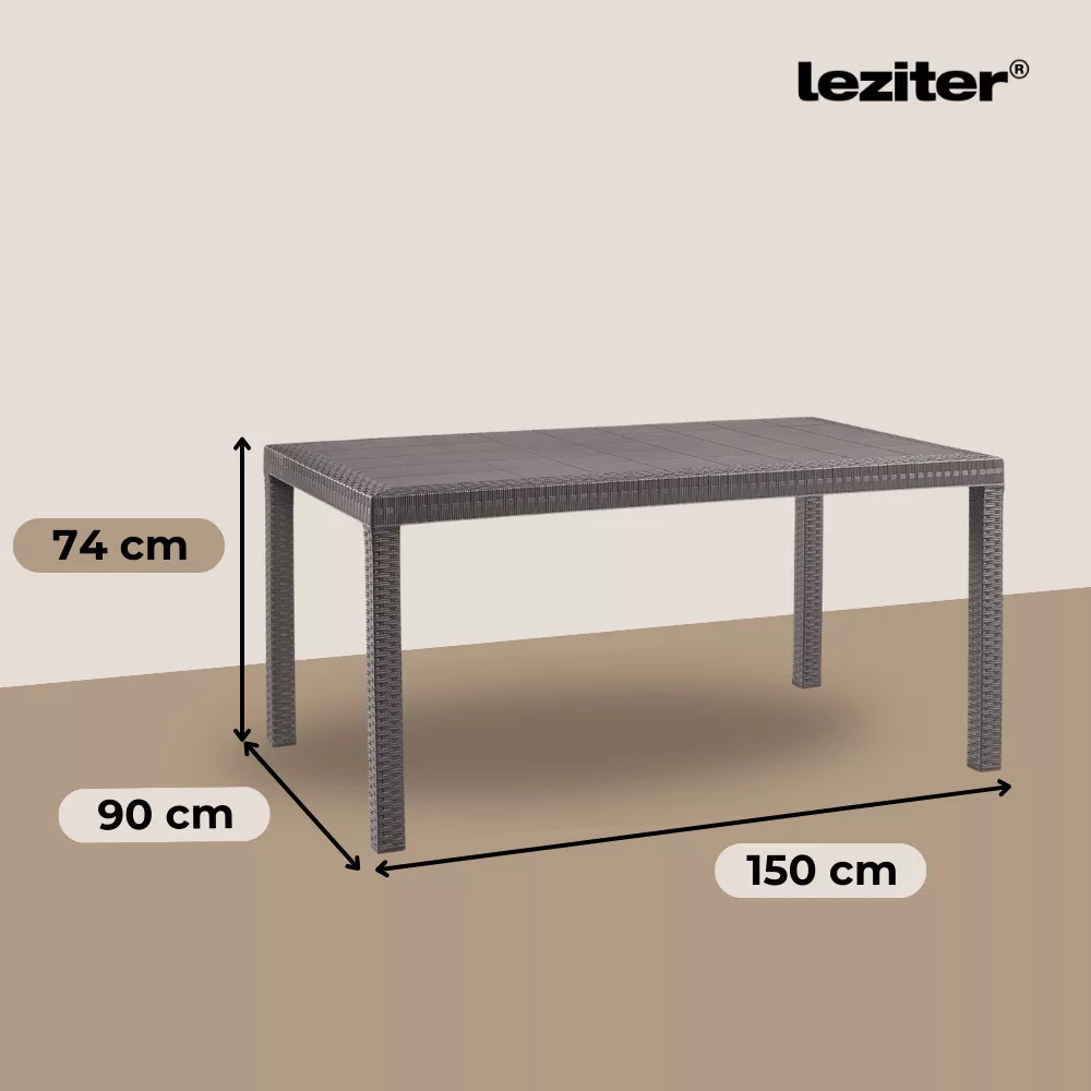 A Venus IV Set 4 személyes kerti bútor garnitúra kompakt és kényelmes megoldás kültéri étkezésekhez és pihenéshez. A négy szék és a nagyméretű, négyszögletes asztal elegendő helyet biztosít családi étkezésekhez vagy baráti beszélgetésekhez. A cappuccino szín elegáns és időtálló megjelenést ad a kertnek, terasznak vagy erkélynek.
