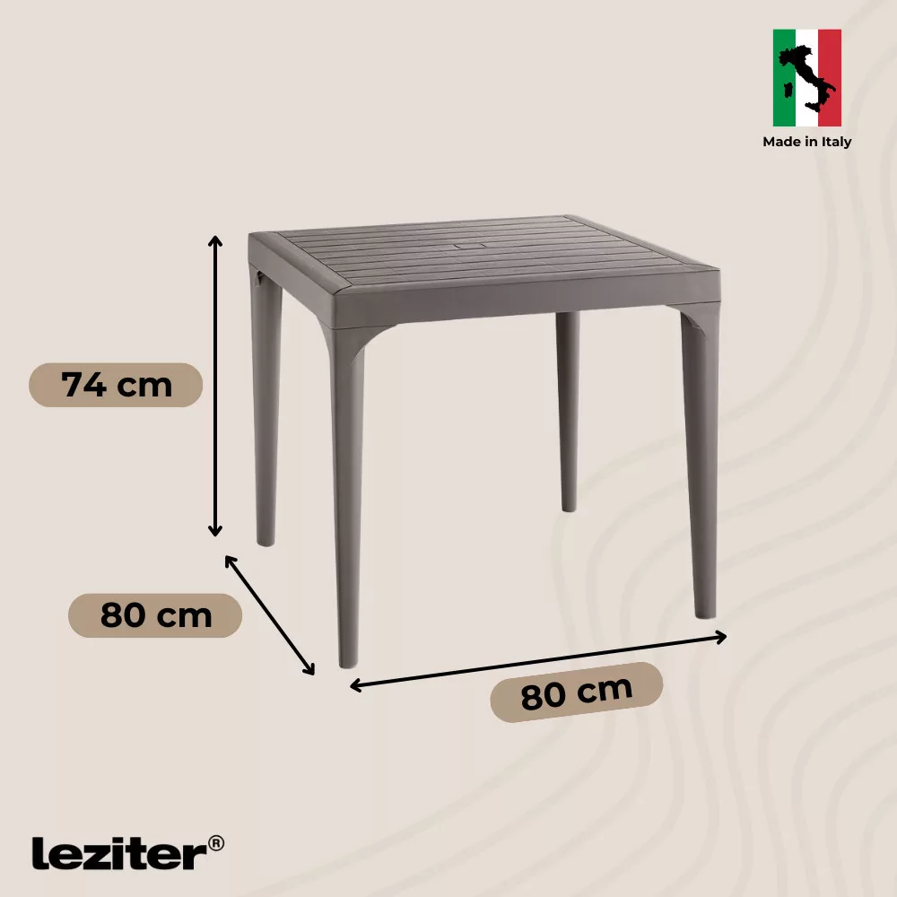 Az Olaszországban gyártott Malina asztal praktikus megoldás minden kis teraszra, erkélyre vagy udvarra. Kompakt méretének és könnyű szerkezetének köszönhetően könnyedén mozgatható, így mindig oda helyezheted, ahol épp szükséged van rá.