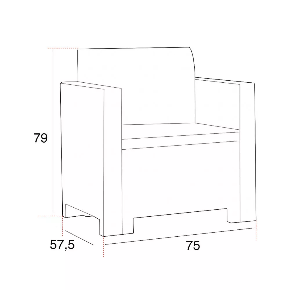 Ten rattanowy zestaw mebli ogrodowych w kolorze grafitowym składa się z dwóch foteli o wymiarach 57,5x 75x 79 cm, jednego fotela o wymiarach 57,5x 79x 131 cm i jednego prostokątnego stołu o wymiarach 40x 64x 64 cm. Jest to wysokiej jakości produkt włoskiej produkcji, wykonany z najlepszej jakości tworzywa sztucznego formowanego wtryskowo.