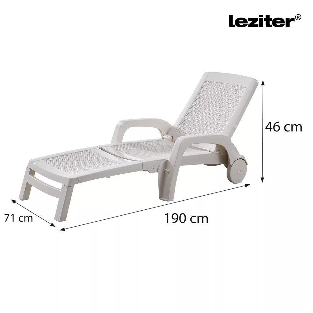 Leżak jest odporny na promieniowanie UV i wodę, dzięki czemu zachowa swój pierwotny stan przez długi czas. Dzięki wytrzymałemu materiałowi nie pęka na słońcu i jest łatwy w czyszczeniu - wystarczy wilgotna szmatka i jest jak nowy!