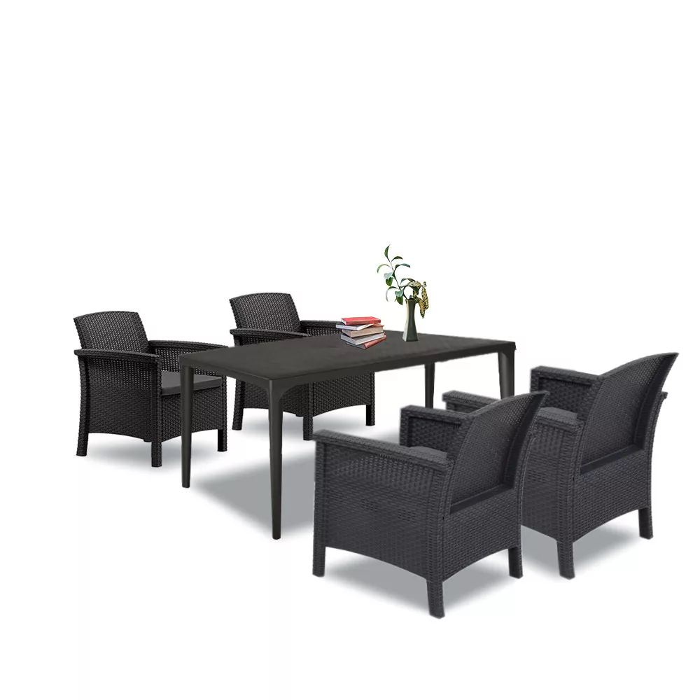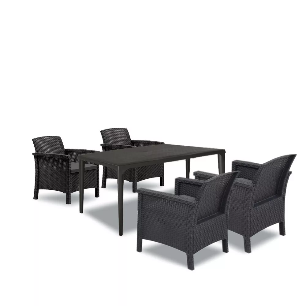 Ten zestaw mebli obejmuje cztery plastikowe krzesła ogrodowe Venus i jeden plastikowy stół ogrodowy Odina, które razem spełnią wszystkie Twoje oczekiwania w zakresie komfortu, funkcjonalności i stylu.