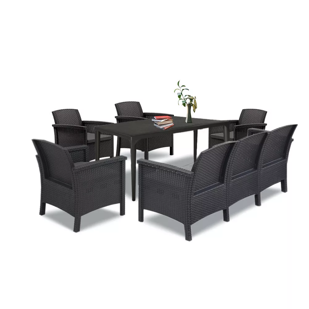 7-częściowy zestaw mebli ogrodowych VENUS III to symbol elegancji i komfortu, tworzący idealne warunki do każdej aktywności na świeżym powietrzu. Niezależnie od tego, czy odpoczywasz, czytasz, czy spotykasz się z przyjaciółmi, ten zestaw mebli pomoże Ci zrobić to wszystko. Uczyń swój dom jeszcze bardziej wyjątkowym dzięki temu wysokiej jakości zestawowi mebli, który będzie służył Tobie i Twoim bliskim przez wiele lat. Nie wahaj się, kup teraz i ciesz się idealnym ogrodem z Venus III!