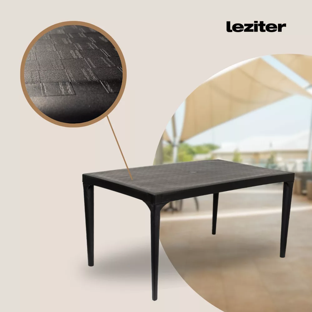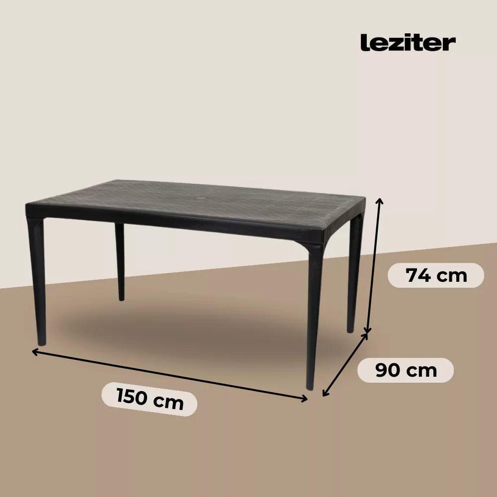 Plastikowy stół ogrodowy Odina to prawdziwa ikona stylu. Ten prostokątny stół o wymiarach 150 x 90 x 74 cm został wyprodukowany we Włoszech. Grafitowy kolor nadaje ogrodowi lub patio elegancki i nowoczesny wygląd. Wykonany z tworzywa sztucznego odpornego na warunki atmosferyczne, stół z łatwością wytrzyma warunki zewnętrzne i idealnie pasuje nawet do basenu. Stół Odina to trwały mebel, który będzie wyglądał jak nowy przez wiele lat. Co więcej, jest łatwy w montażu, więc nie potrzebujesz żadnej specjalistycznej wiedzy, aby go ustawić.