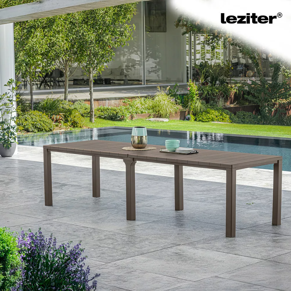 Stół o stałym rozmiarze nigdy nie jest wystarczająco elastyczny - albo jesteś przy nim stłoczony, albo zajmuje niepotrzebnie miejsce. Może to być irytujące, zwłaszcza jeśli często zmieniasz liczbę osób, które chcesz pomieścić. Ponadto większość stołów ogrodowych szybko blaknie, pęka lub wymaga regularnej konserwacji.