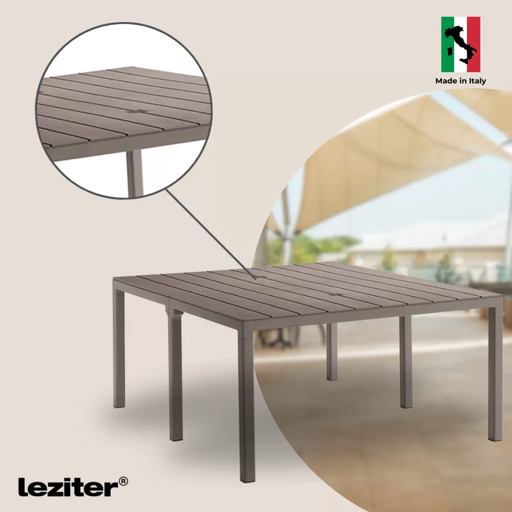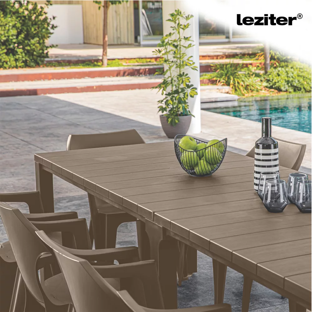 Nowoczesny kolor taupe jest elegancki i będzie pasował do każdego patio lub ogrodu. Odporne na warunki pogodowe, chronione przed promieniowaniem UV tworzywo sztuczne zapewnia bezproblemowe użytkowanie przez wiele lat. Nie wymaga malowania, nie rdzewieje i jest łatwy do czyszczenia za pomocą ściereczki.