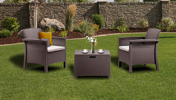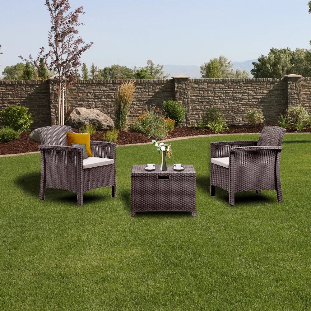 Trwałość: Dostępny w kolorze brązowym ze stylowymi poduszkami, ten zestaw mebli ogrodowych ma lekką, ale wytrzymałą ramę. Ponadto każdy element jest łatwy do czyszczenia, dzięki czemu można uzyskać nieskazitelny wygląd w mgnieniu oka.