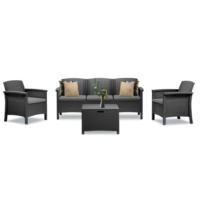 Ez a kerti bútor szett elegendő helyet biztosít az egész család számára, hogy a szabad levegőn tudják tölteni az időt. Nagyszerű választás, ha napközben szeret az udvaron pihenni és olvasgatni és alkalmas családi összejövetelekhez is. Ez a szett minden udvart és teraszt feldob modern megjelenésével.