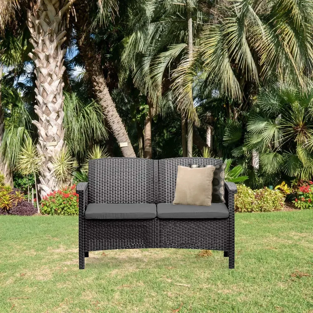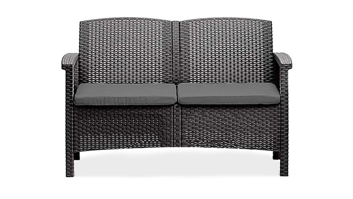Sofa o wymiarach 117 x 64,5 x 76 cm nadaje się zarówno do użytku wewnętrznego, jak i zewnętrznego, ponieważ jest odporna na warunki atmosferyczne. Będzie ważnym elementem wyposażenia ogrodu lub patio, oferując miejsce do siedzenia dla dwóch osób i zapewniając im najwyższy komfort. Praktyczny, solidny, trwały i wyjątkowo estetyczny mebel może być używany zarówno w pomieszczeniach prywatnych, jak i komercyjnych (np. restauracjach, hotelach, kawiarniach).