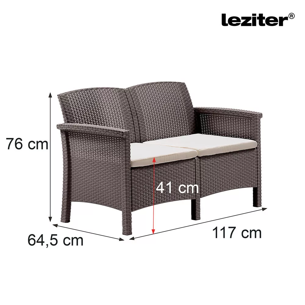 Sofa ogrodowa Venus wyróżnia się wśród wyższej klasy mebli ogrodowych. Dzięki wymiarom 117 x 64,5 x 76 cm i wysokości siedziska 41 cm jest idealnym wyborem dla dwóch osób, zarówno na popołudniową kawę, jak i intymną rozmowę.