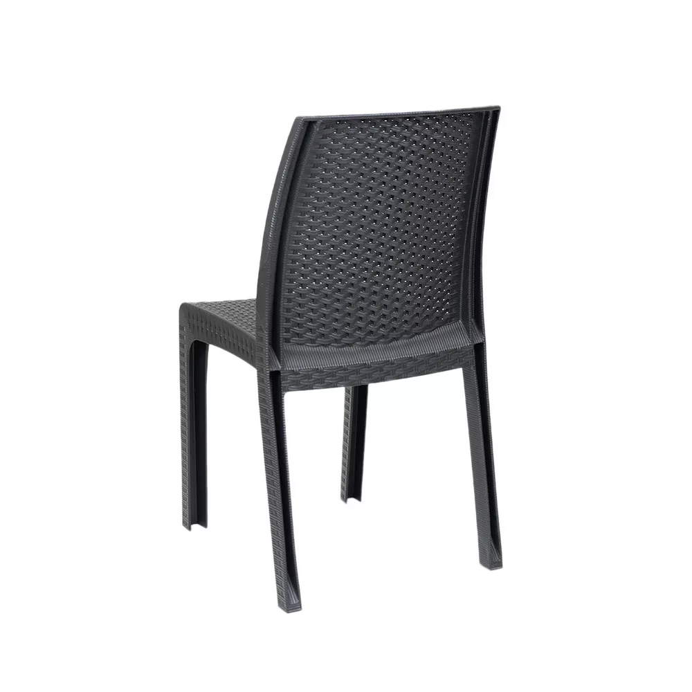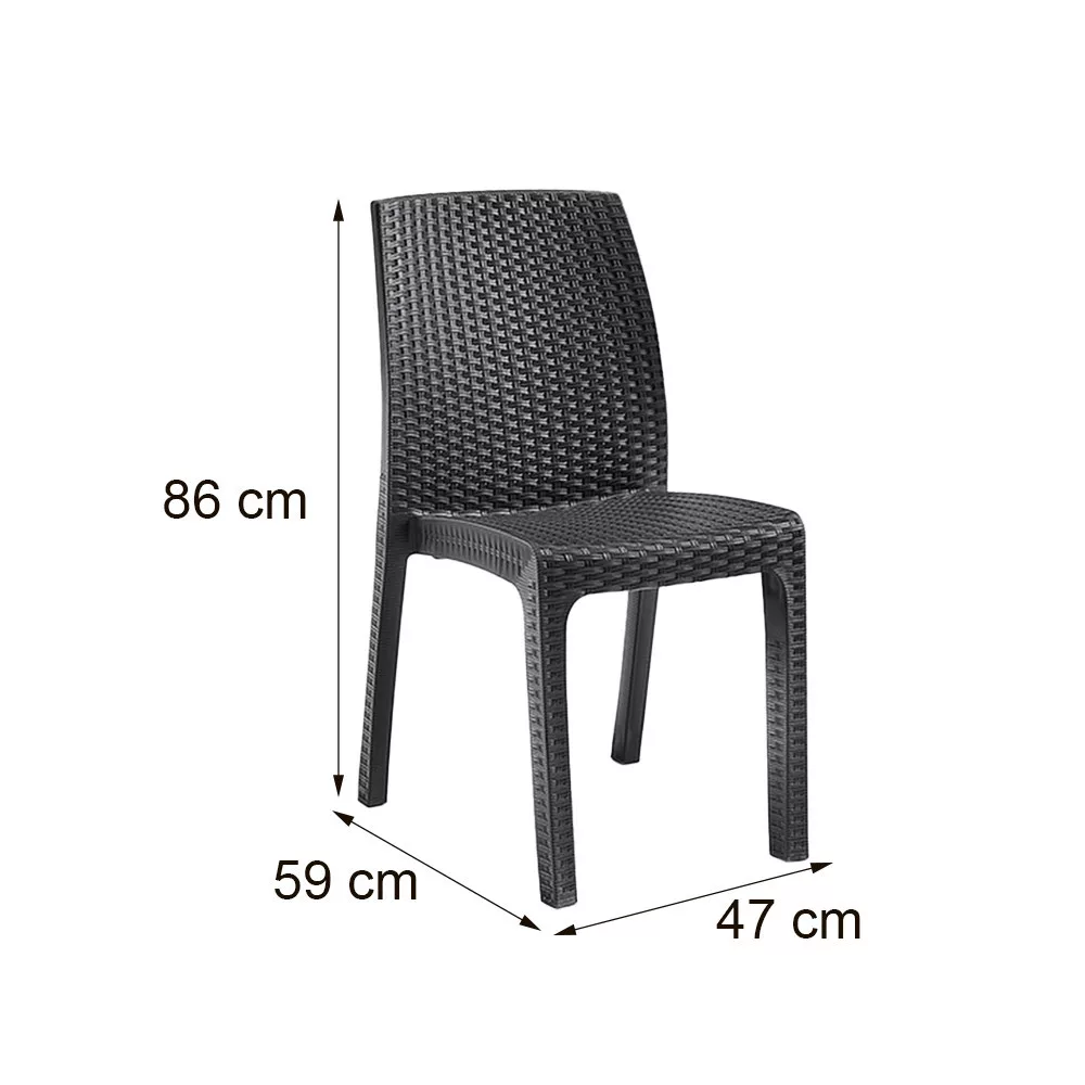 To naprawdę eleganckie i wygodne krzesło ogrodowe. Grafitowy kolor i oryginalne wykończenie przypominające rattan przypadną do gustu większości użytkowników. Wykonane z wytrzymałego tworzywa sztucznego, które jest odporne na warunki atmosferyczne i promienie UV. Łatwe do utrzymania w czystości i bardzo proste w montażu, nie wymaga wiedzy technicznej. Możesz wybrać krzesła i stół z naszej oferty, aby uzyskać meble ogrodowe, które najbardziej Ci odpowiadają.