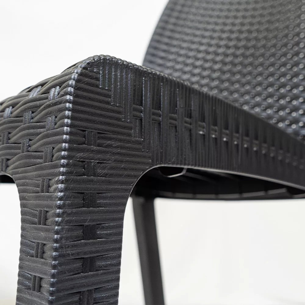 Krzesło wykonane jest z plastikowego polipropylenu, imitującego efekt naturalnego rattanu. Ma to tę zaletę, że jest to mebel łatwy do przenoszenia, elegancki, a jednocześnie trwały i stabilny, dzięki czemu można go bezpiecznie używać. Tworzywa sztuczne użyte do ich produkcji są w dużej mierze poddawane recyklingowi, co czyni je bardziej zrównoważonym wyborem. Kolejną zaletą mebli rattanowych jest to, że są wodoodporne, odporne na ekstremalne warunki pogodowe i promienie UV oraz łatwe do czyszczenia.